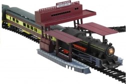 - Lokomotíva, 6 vagónov, cca 10 m koľají, 4 stromčeky