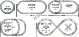 Poskladajte rôzne tvary okruhov a využite rozjazdy na tvorbu dĺžok a odbočiek podľa fantázie dieťaťa.