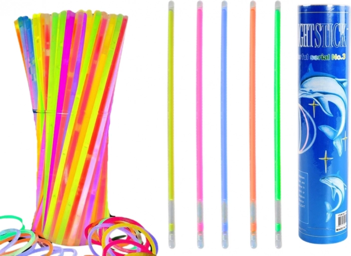 Fluorescenčné pásiky 100 kusov mnoho farieb svietiacich v tme