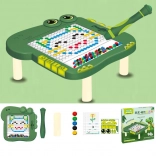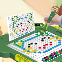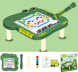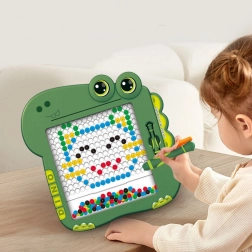 Objavte magnetickú tabuľku, ktorá premení učenie na hru. Vďaka priehľadnému okienku s farebnými korálikmi (čierne, zelené, modré, červené a žlté) a magnetickému rysovníku deti ľahko skladajú vzory, písmená či jednoduché obrázky. Zelený dinosauří dizajn si okamžite získa malých tvorcov.
