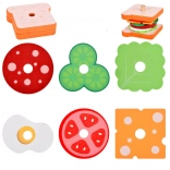 Tento farebný drevený set umožní deťom skladať vlastné „sendviče“ podľa fantázie aj podľa priložených kariet objednávok. Vďaka jednoduchým vizuálnym inštrukciám deti ľahko napodobnia recepty, učia sa rozlišovať farby a tvary a trénujú plánovanie krok za krokom.