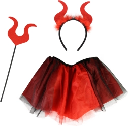 Obohaťte šatník vašej malej čertice týmto kúzelným kostýmom, ktorý je skvelý na Halloween, maškarné plesy alebo tematické večierky. Tento dokonale zladený set obsahuje: