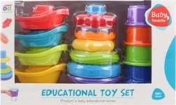 - 4 lodičky do vody, skladacia pyramída s krúžkami, 4 stohovacie poháriky