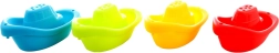 Štyri plávajúce lodičky v jasných farbách spríjemnia kúpanie. Otvory umožňujú naberať a prelievať vodu, čo podporuje koordináciu a zvedavé experimenty.