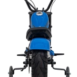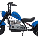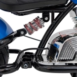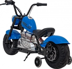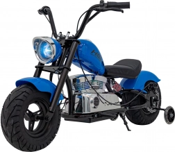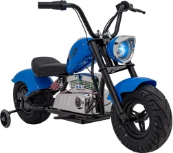 Štýlová detská elektrická motorka v štýle choppera ponúkne silný bezkefový motor 350 W, 36 V batériu, nafukovacie kolesá a bočné stabilizačné kolieska pre bezpečné prvé jazdy. Nechýba LED svetlo, zvuky motora a audio panel s MP3/USB pre ešte väčšiu zábavu.