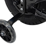 Na prvé krôčky v sedle poslúžia odnímateľné bočné kolieska, ktoré dodajú stabilitu a istotu. O zábavu sa postará predné LED osvetlenie, podsvietený motor a audio panel s MP3, USB, vstavanými melódiami aj imitáciou zvuku motora. Príjemné sedadlo z ekokože zaistí pohodlie aj pri dlhšej jazde.