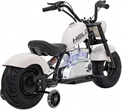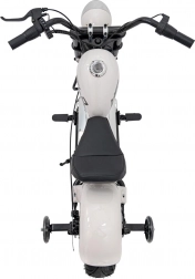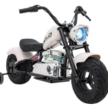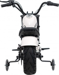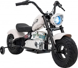 Motorka chopper Warrior v bielej farbe je ideálna pre malých jazdcov, ktorí chcú zažiť skutočnú jazdu s maximálnym komfortom a bezpečím. Výkonný 350W bezkefkový motor v kombinácii s 36V batériou sa postará o plynulé rozjazdy a dostatok sily, zatiaľ čo prídavné bočné kolieska pomáhajú udržať stabilitu v začiatkoch. Robustná konštrukcia a nafukovacie kolesá 32 × 10 cm zvládnu chodníky aj hladký terén.