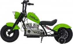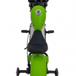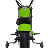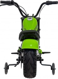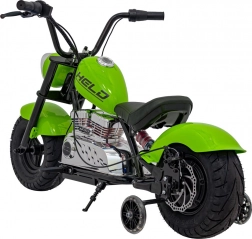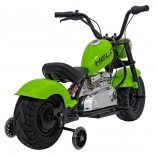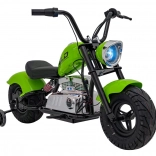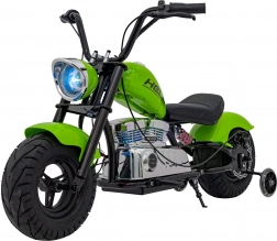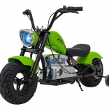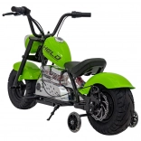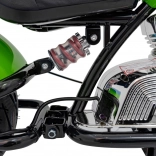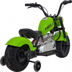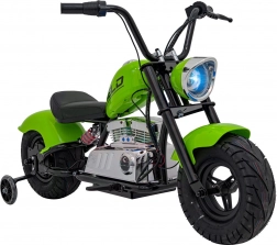 Elektrická motorka Chopper Warrior v zelenej farbe je ideálna pre malých jazdcov, ktorí chcú zažiť skutočnú radosť z jazdy. Vďaka výkonnému 350 W bezkefovému motoru a batériovému systému 36 V ponúkne plynulý záťah a dlhú výdrž. Široké nafukovacie kolesá 32×10 cm spolu s tlmením a bočnými kolieskami pridávajú stabilitu a pohodlie na rôznych povrchoch.