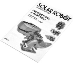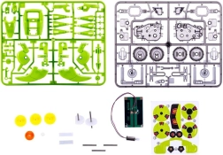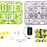 Obsiahnuté komponenty: plastové diely pre zostavenie robota, solárny panel, motor, plastové očká, samolepky a obrázkový návod.