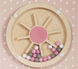 - Horná časť: Obsahuje dráhu s pohyblivými guličkami, ktoré trénujú dieťa v presnosti pohybov a koncentrácii.
