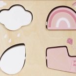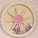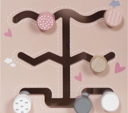 - Drevená konštrukcia: Pevná a estetická, vyrobená z bezpečných materiálov, maľovaná v umiernených pastelových farbách, ktoré dodávajú hračke elegantný vzhľad a sú priateľské k dieťaťu.