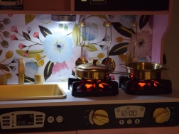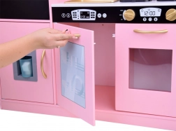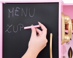 Táto štýlová detská drevená kuchyňa je snom každého malého kuchára. Je vyrobená s detailami pre reálny vzhľad a je nielen esteticky príjemná, ale tiež plne funkčná pre realistickú hru. Hračka je ideálna pre deti, ktoré radi napodobňujú dospelých a chcú sa cítiť ako v skutočnej kuchyni.