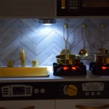 Funkcie: Ponúka všetko, čo deti potrebujú pre hru, vrátane chladničky, mikrovlnnej rúry so zvukovými a svetelnými efektmi, pece, a dokonca aj kockovača ľadu. Súčasťou sú aj kuchynské nástroje ako hrniec, panvica, pokrievka, naberačka, cedidlo, špachtle a ďalšie.