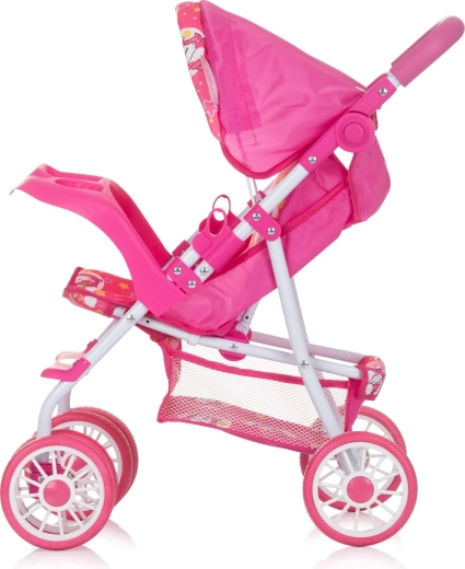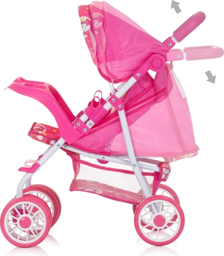 CHIPOLINO kočík pre bábiky DOLLY UNICORNS je skvelou voľbou na každodenné hranie a nácvik starostlivosti. Pevný kovový rám so stabilnými dvojitými kolesami zaisťuje hladkú jazdu, zatiaľ čo polohovateľná opierka chrbta umožní bábike cestovať vzpriamene aj v ľahu. Nastaviteľná strieška chráni pred „slnkom“ a dodáva kočíku štýl.