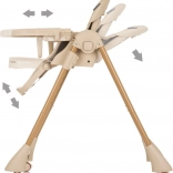 Jedálenská stolička CHIPOLINO Candy Shop macadamia je navrhnutá pre samostatne sediace deti s hmotnosťou do 15 kg. Vďaka 8 výškovým polohám, 3 polohám opierky chrbta a 3 polohám opierky nôh ľahko prispôsobíte sedenie rastu dieťaťa aj výške stola. Široké, mäkko polstrované sedadlo a 5-bodové bezpečnostné pásy s ramennými vankúšikmi zabezpečujú pohodlie i maximálnu bezpečnosť.