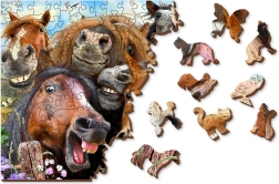 Štýlové drevené puzzle WOODEN CITY „Kone všade navôkol“ ponúka originálne spracovanie s precízne laserom zvýraznenými detailmi. Časť dielikov má tvary zvierat, stavieb aj predmetov a môžu samostatne stáť ako malé figúrky. Vďaka rozmanitým tvarom poskytuje skladanie príjemnú výzvu aj skúsenejším milovníkom puzzle.