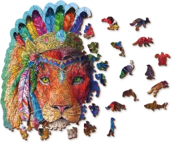 Objavte pôsobivé drevené puzzle s motívom mystického leva s bohatým zdobením a pestrofarebnými detailmi. Unikátne tvarované dieliky, vrátane zvieracích siluet, premenia skladanie na kreatívnu a napínavú zábavu. Vďaka laserom zvýrazneným detailom a dokonale hladkým hranám je skladanie príjemné a výsledný obraz pôsobí ako umelecký kúsok vhodný aj na dekoráciu interiéru.