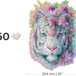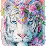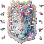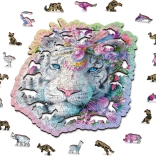 Štýlové drevené puzzle WOODEN CITY Mystický tiger z precízne rezanej HDF dosky prináša väčšiu výzvu vďaka unikátne tvarovaným dielikom, z ktorých niektoré majú podobu zvierat a môžu stáť ako drobné figúrky. Laserom zvýraznené detaily, hladké hrany bez triesok a eco-friendly balenie bez plastov z neho robia perfektný darček na každú príležitosť.