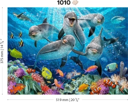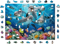 Doprajte si unikátny zážitok z puzzle s motívom veselých delfínov. Vďaka špeciálne tvarovaným dielikom, z ktorých časť má podobu zvierat a môže slúžiť aj ako malé figúrky, získate netradičné skladanie plné prekvapení. Precízne laserové spracovanie zaisťuje ostré detaily motívu aj dokonale hladké hrany bez triesok.