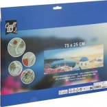 - Žiarivý obraz s detailným motívom Santorini (75 × 25 cm)