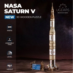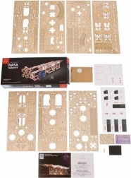 Model je vyrobený z kvalitného, ekologického dreva s precízne predrezanými dielmi pre zostavenie bez lepidla. Vďaka detailnému návodu ho zvládnu aj zruční začiatočníci, zatiaľ čo skúsení modelári ocenia technickú premyslenosť, mechanické prvky a prepracované detaily vrátane lunárneho modulu.