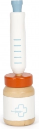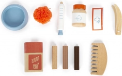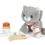 Drevená injekcia s pružinovým mechanizmom, dóza na lieky a ďalšie pomôcky podporujú autentickú hru na ošetrenie miláčika.