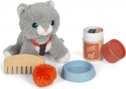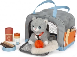 Táto bohato vybavená sada prináša všetko, čo deti potrebujú k starostlivosti o svoj plyšový chlpatý poklad. Mačička s postrojom môže cestovať v pohodlnej prepravnej taške s podložkou a kedykoľvek je treba, deti majú po ruke pomôcky na kŕmenie, ošetrenie aj maznanie. Hra na malého veterinára rozvíja empatiu a zodpovednosť zábavnou formou.