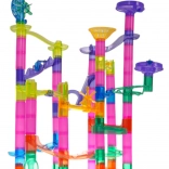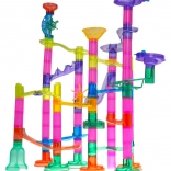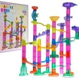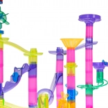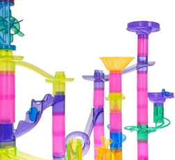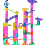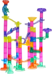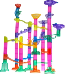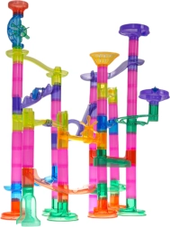 Postavte si vlastnú guľôčkovú dráhu s bohatou sadou 105 prvkov a užite si hodiny tvorivej zábavy. Farebné, priehľadné diely umožnia deťom od 3 rokov stavať rôzne trasy, zatiaľ čo 33 guľôčok vrátane 5 kusov so svetielkami na batérie oživia hru. Táto dráha rozvíja kreativitu, jemnú motoriku, koordináciu ruka–oko a učí logickému mysleniu aj trpezlivosti.