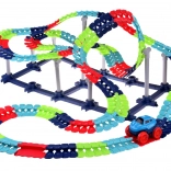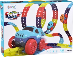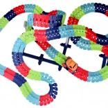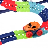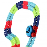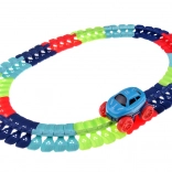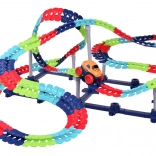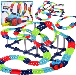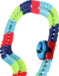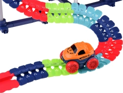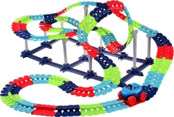 Táto farebná autodráha podporuje fantáziu, jemnú motoriku a trpezlivosť. Vďaka ohybným spojom môžete trať ľubovoľne tvarovať, ohýbať a meniť – od krátkych šprintov až po veľkolepé parky plné zábavy. Autíčko s LED svetlami sa po zapnutí samo rozbehne a zvláda aj prudšie zákruty.