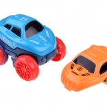 Autíčko s nabíjacím akumulátorom a LED osvetlením sa po stlačení tlačidla rozbehne samo. Gumové pásiky na zadných kolesách zvyšujú trakciu na trati.