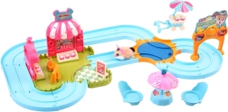 Objavte farebnú interaktívnu dráhu so zmrzlinárňou, v ktorej roztomilý plyšový škrečok rozváža dobroty. Zvieratko sa po spustení samo pohybuje a mení smer, dráha ponúka výhybku a množstvo doplnkov pre bohatú hru. Súčasťou je aj vozík, stolík s parasolou, kresielka a makety dezertov – všetko pre kreatívnu, dlhotrvajúcu zábavu detí. Batéria AG13 je v balení a farba škrečka je zasielaná náhodne.