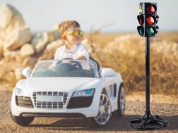 Svietiace dopravné značenie s 3 svetlami v červenej, oranžovej a zelenej farbe a efektom blikania bude nepostrádateľným atribútom pri výučbe pravidiel cestnej premávky, pohybu na ceste a prechádzaní cez priechody pre chodcov.