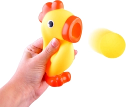 Zábavné strieľajúce kuriatko je jednoduchá hračka, ktorá spája aktívny pohyb a bezpečnú zábavu doma aj vonku. Stačí vložiť penovú loptičku do zobáčika a stlačiť bruško – loptička vyletí do vzduchu. Mäkký materiál je ľahko stlačiteľný, ľahký a vhodný aj pre menšie deti.
