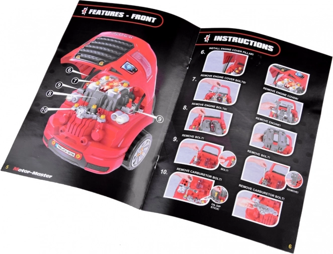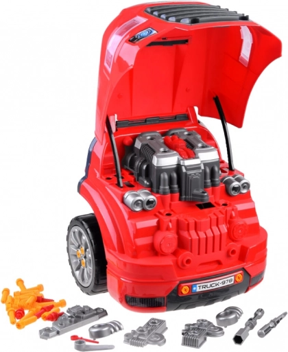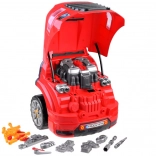 Auto s motorom na rozoberanie. Autodielňa pre malých automechanikov obsahujúca 61 kusov poskytne každému malému mechanikovi veľa práce. Plne funkčná hračka je vyrobená z plastu v červenej a čiernej farbe a umožní skvelú zábavu.