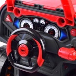 - červené tlačidlo start/stop – dieťa spustí spaľovací motor a jeho chod