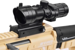 Ergonomická rukoväť a pieskové prevedenie s doplnkami ako zameriavač pre realistický, no bezpečný herný zážitok.