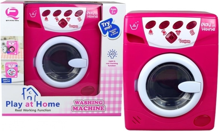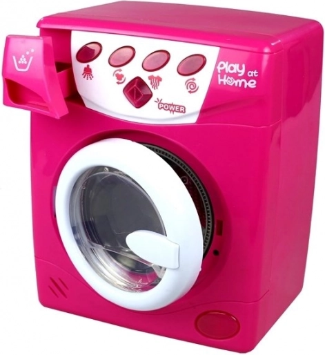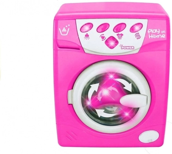 Ružová práčka na batérie s realistickými svetelnými a zvukovými efektmi, vhodná pre deti od 3 rokov. Perfektná hračka pre malé gazdiné, balená v darčekovom balení.