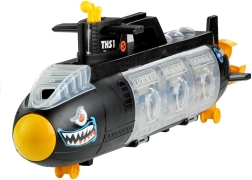 Hračka sa skladá z čiernej konštrukcie v kombinácii so žltými detailmi a nálepkami a z priehľadnej časti s priehradkami pre vozidlá. Jedna časť je naplnená – v každom oddelení sa nachádza zaujímavé vozidlo, ktoré určite spestrí hru. Druhá časť triediča je prázdna, takže si chlapec bude môcť uložiť svoje obľúbené autíčka na jedno miesto. Hračka je osadená na malých otočných kolieskach, takže sa s ňou dá hrať pri jazde po podlahe. Ponorka má mnoho detailov, ktoré vytvárajú dojem, že ide o malú kópiu stroja v plnej veľkosti. Môžete si prezrieť lodnú vrtuľu umiestnenú na konci konštrukcie a tiež periskop, ktorý umožňuje sledovať, čo sa deje nad hladinou. Priehľadný triedič je zdobený okienkami, čo vyzerá fantasticky. Hlavná hračka je spolu s priloženými vozidlami vyrobená z odolného a predovšetkým pevného plastu, ktorý je odolný voči poškodeniu, ku ktorému môže dôjsť počas hry.
