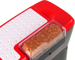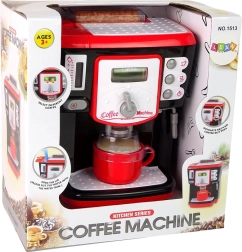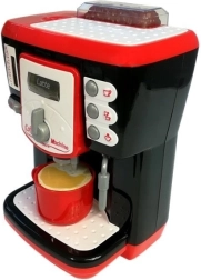 Čiernočervený kávovar je naozaj zaujímavá hračka. Vzhľadovo je štylizovaný podľa moderných automatov, takže môže smelo stáť v kuchyni vedľa svojho originálu. Hračka je vybavená tlačidlom na prepínanie druhov pripravovanej kávy – Cappuccino, Latte a Macchiato. Na ľavej strane kávovaru sa nachádza nádržka, po ktorej prepnutí tlačidlom začne z automatu vytekať voda! Na pravej strane sú naopak tlačidlá simulujúce rôzne režimy kávovaru. Súprava je tiež vybavená imitáciou zrnovej kávy v zásobníku a šálkou, ktorú možno kávovarom naplniť.