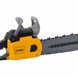 Táto detská motorová píla je navrhnutá tak, aby verne napodobňovala skutočný nástroj, no bola úplne bezpečná pre deti. Po zapnutí a stlačení tlačidla na rukoväti sa gumový reťaz začne otáčať a sprevádzajú ho realistické zvuky a blikajúce svetlá. Vďaka ergonomickej rukoväti sa dobre drží a ľahko ovláda.
