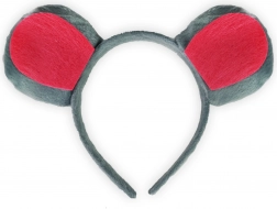 Šedá a červená plyšová čelenka s myšími ušami poskytuje pohodlné nosenie pre všetky vekové kategórie.