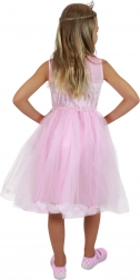 Ružové princeznovské šaty s motívom labute premenia každé dievčatko na nežnú rozprávkovú postavu. Ľahučký tyl s lupeňmi dodáva sukni nadýchaný vzhľad, zatiaľ čo saténová spodnička drží tvar a zabezpečuje pohodlné nosenie. Horný diel zdobí elegantná ilustrácia labute, ktorá podčiarkuje čarovný dizajn.