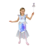 Okúzlite všetkých na karnevale v kostýme morskej panny s flitrami, ktoré vyzerajú ako šupiny. Kostým v modrých a pastelových odtieňoch je ľahký, príjemný na nosenie a umožňuje voľný pohyb pri tanci aj hrách. Súčasťou je aj ladiaca palička, ktorá podčiarkne čarovný dojem.