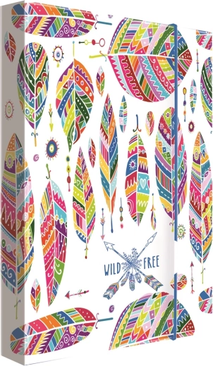 Štýlový a praktický box na zošity vo formáte A4 Jumbo s motívom Pierka. Ideálny pre školákov aj študentov na ukladanie zošitov, papierov a pomôcok. Vďaka laminovanému povrchu je odolný proti poškodeniu, udržuje poriadok a chráni obsah. Praktické zatváranie na gumičku a šírka chrbta 4 cm pre dostatok miesta.
