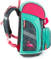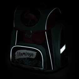 Ľahká a ergonomicky tvarovaná školská aktovka s motívom plameniaka ponúka anatomicky tvarovaný chrbát, široké mäkčené popruhy a pevné dno pre bezpečné nosenie školských potrieb. Vďaka reflexným prvkom je dieťa lepšie viditeľné a priestranná komora s praktickými vreckami zaistí prehľadnú organizáciu pomôcok pre 1.–2. ročník.