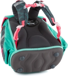 Anatomicky tvarovaný, vystužený chrbát a široké mäkčené popruhy z priedušného materiálu zabezpečujú správne usadenie a rovnomerné rozloženie záťaže.