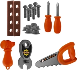 Pracovné nástroje ako kľúč, kladivo a píla vyzerajú ako skutočné, čím podporujú hranie rolí a rozvoj predstavivosti.