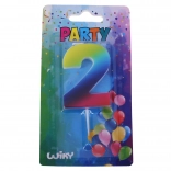 Dúhová narodeninová sviečka v tvare čísla 2 rozžiari každú tortu. Vďaka integrovanému voskovému stojančeku ju jednoducho a bezpečne zapichnete, takže počas oslavy dobre drží na mieste.
