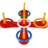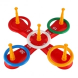 Hra obsahuje krížovú základňu a pestré kruhy pre zábavné hádzanie.