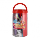 Všetko je uložené v odolnej plastovej dóze, ktorá udržiava pracovný kútik prehľadný a materiál vždy po ruke. Skvelý tip na darček pre malých kutilov a výtvarníkov.